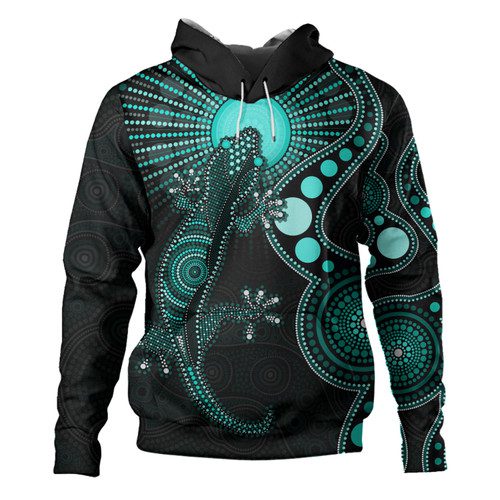 Indigenous Australian Aboriginal Hoodie Turquoise Dreaming Gecko Spirit