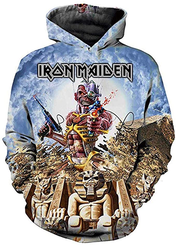 Iron Maiden XIAOSICHUAN Pullover Hoodie Product Features Along with its Iron Maiden graphics, this cozy pullover hoodie features super-soft midweight material. Material: 95% polyester + 5% spandex. The fabric is durable and resistant to wrinkles, shrinking and mildew. Hood with drawstrings. Long sleeve. Front pouch pocket. Midweight hoodie suitable for moderate temperatures. Features a specialty...