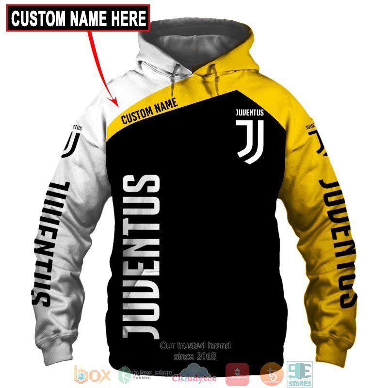 Juventus FC Custom Name Black Yellow Pullover Hoodie Product Features Along with its Juventus FC graphics, this cozy pullover hoodie features super-soft midweight material. Material: 95% polyester + 5% spandex. The fabric is durable and resistant to wrinkles, shrinking and mildew. Hood with drawstrings. Long sleeve. Front pouch pocket. Midweight hoodie suitable for moderate temperatures....