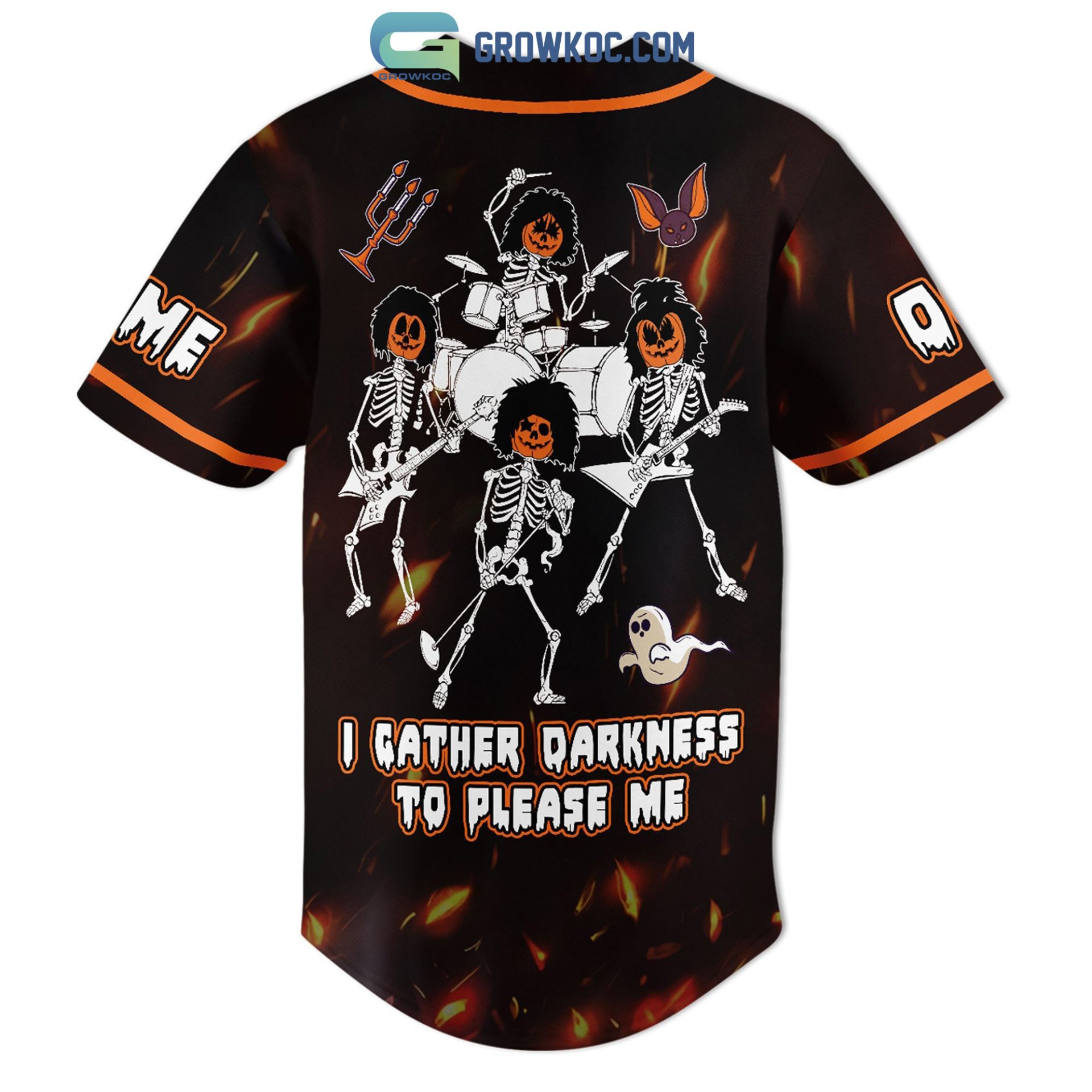Kiss Custom Name Number I Gather Darkness To Please Me Baseball Jersey Product Features This Kiss Baseball Jersey is not only sturdy and durable for long hours of exercising, but also breathable and moisture-wicking to keep you snug all day. Breathable fabric: This Baseball Jersey is made of woven fabric, with moisture-wicking features and a...