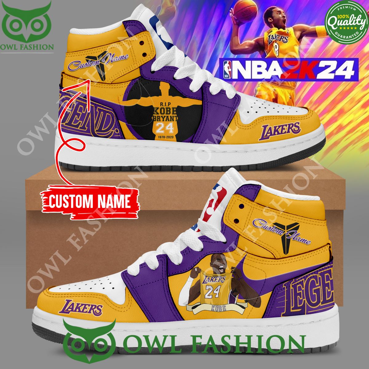 In conclusion, the Kobe Bryant Los Angeles Lakers NBA Air Jordan High Top Custom Name sneakers are a testament to the intersection of sports and style. With their iconic design, personalization option, and high-quality construction, these sneakers pay homage to Kobe Bryant’s legacy in a way that resonates with fans on a personal level. Step into the spirit of the Black Mamba with each stride and let these custom high-tops become a timeless tribute to a basketball legend.