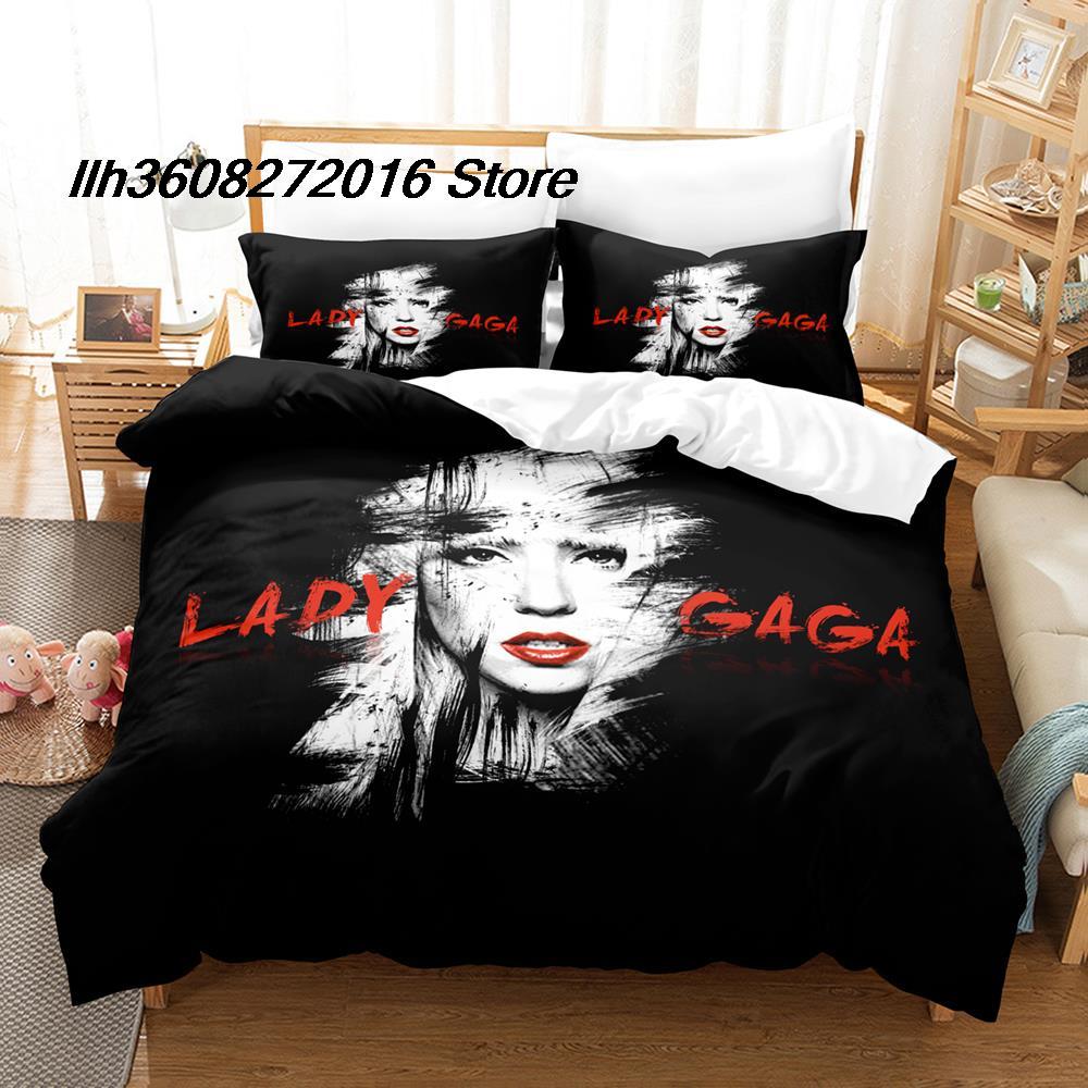 Product Features This Lady Gaga quilt cover set is custom-made-to-order and handcrafted to the highest quality standards. Material: 100% Polyester. Comes with one doona cover and two pillowcases. Pillow inserts and duvet inserts are not included. SOFT & COMFORTABLE – Made using soft material with siliconized fiber filling that provides a comfy and cozy feel...