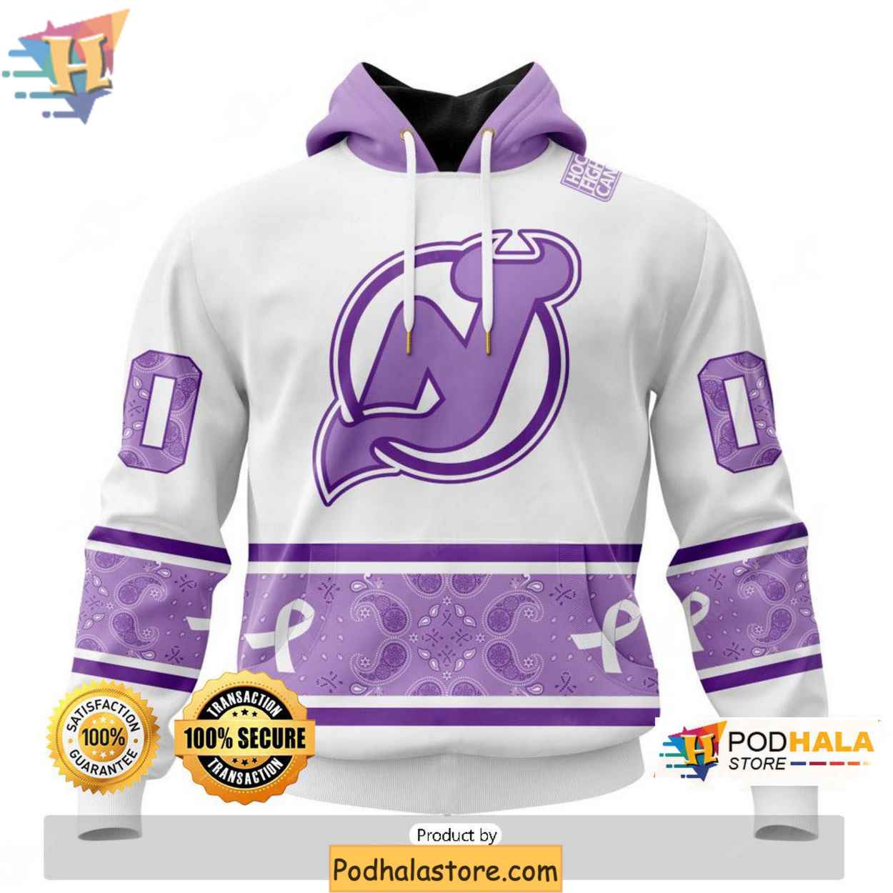 Lavender New Jersey Devils 3D Hoodie NHL Cancer Awareness Custom Apparel