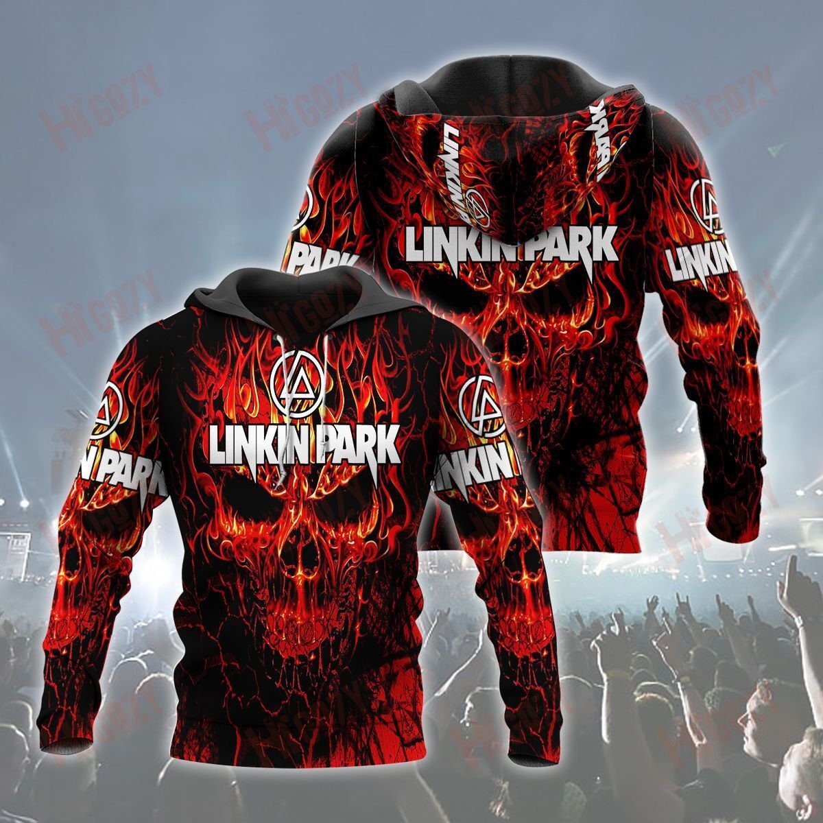 Linkin Park Flame Skull Pullover Hoodie Product Features Along with its Linkin Park graphics, this cozy pullover hoodie features super-soft midweight material. Material: 95% polyester + 5% spandex. The fabric is durable and resistant to wrinkles, shrinking and mildew. Hood with drawstrings. Long sleeve. Front pouch pocket. Midweight hoodie suitable for moderate temperatures. Features a...