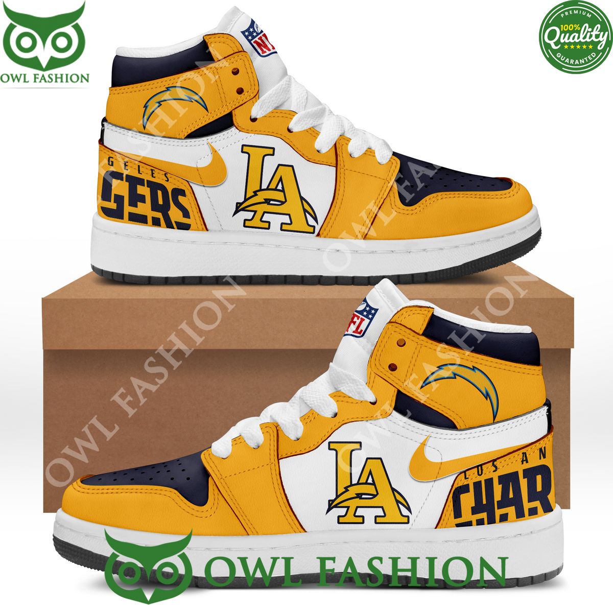 In conclusion, the Los Angeles Chargers Football Air Jordan 1 High Top is a stellar addition to the wardrobe of any Chargers fan who wants to showcase their team pride with flair. These sneakers aren’t just about supporting the team; they’re about making a bold fashion statement that reflects your dedication to the Chargers. Step into the world of sports-inspired fashion with a pair of high-tops that encapsulate the spirit and energy of the Los Angeles Chargers.