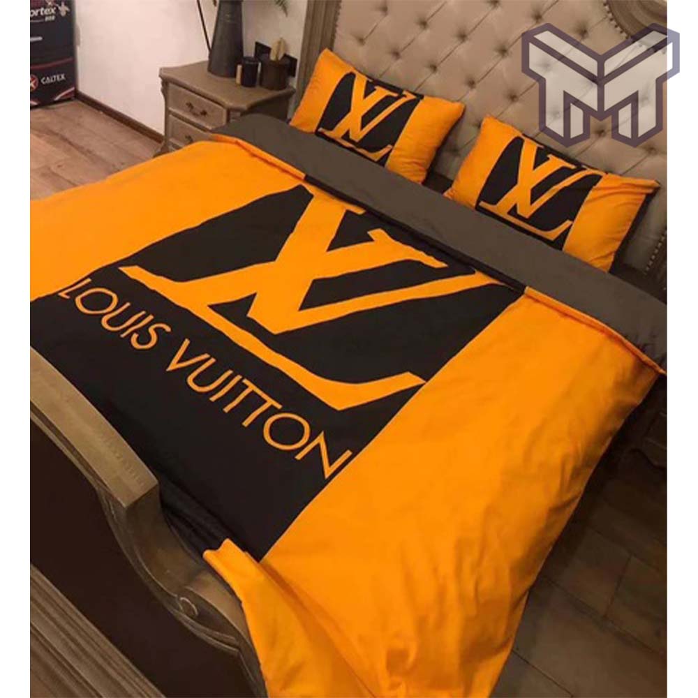 Louis Vuitton Bedding Set, Louis Vuiton Orange Logo, Luxury Brand Bedding Set, Home Decor, The Best Quantity and Service: