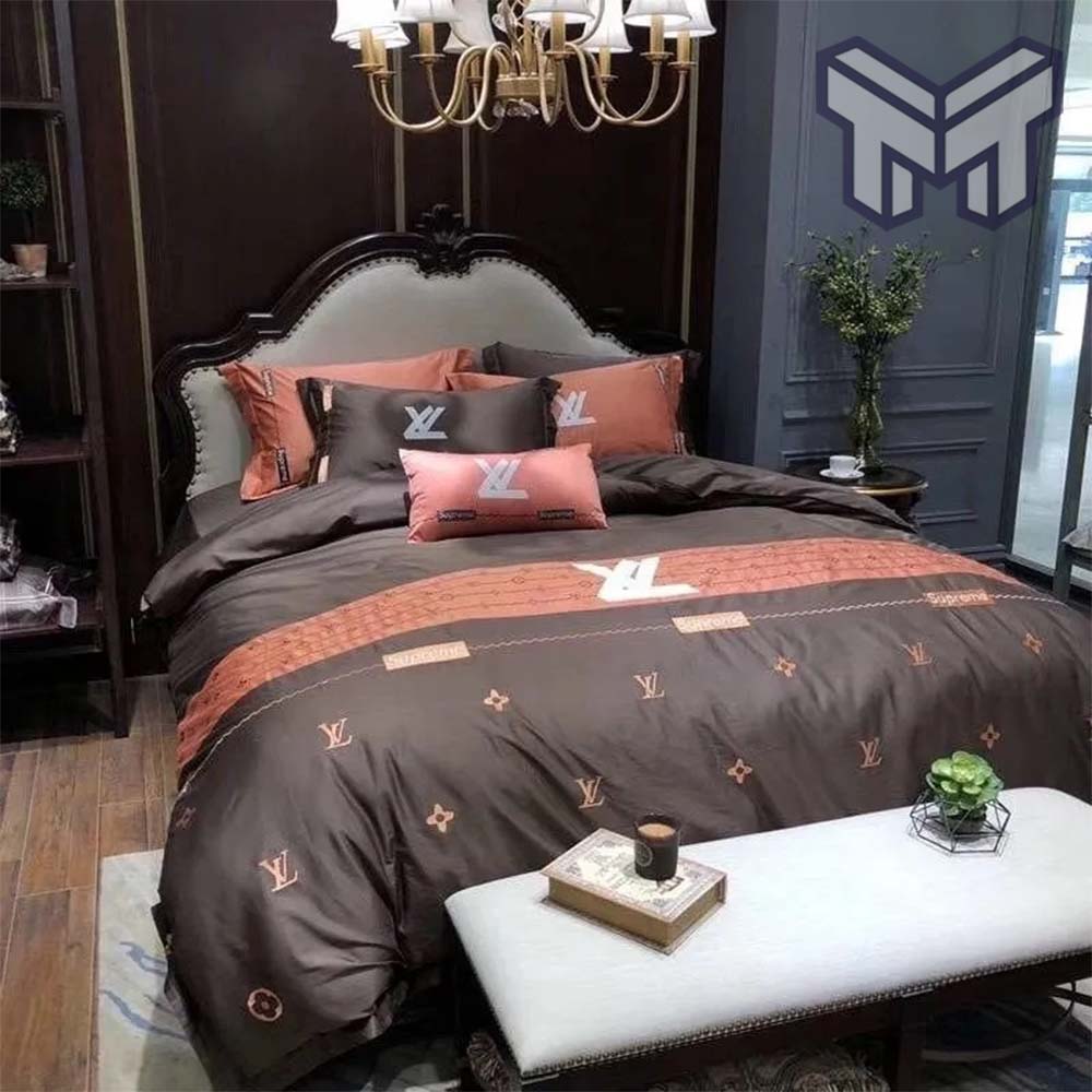 Louis Vuitton Bedding Set,Louis Vuitton Brown Luxury Brand Bedding Set Duvet Cover Home Decor