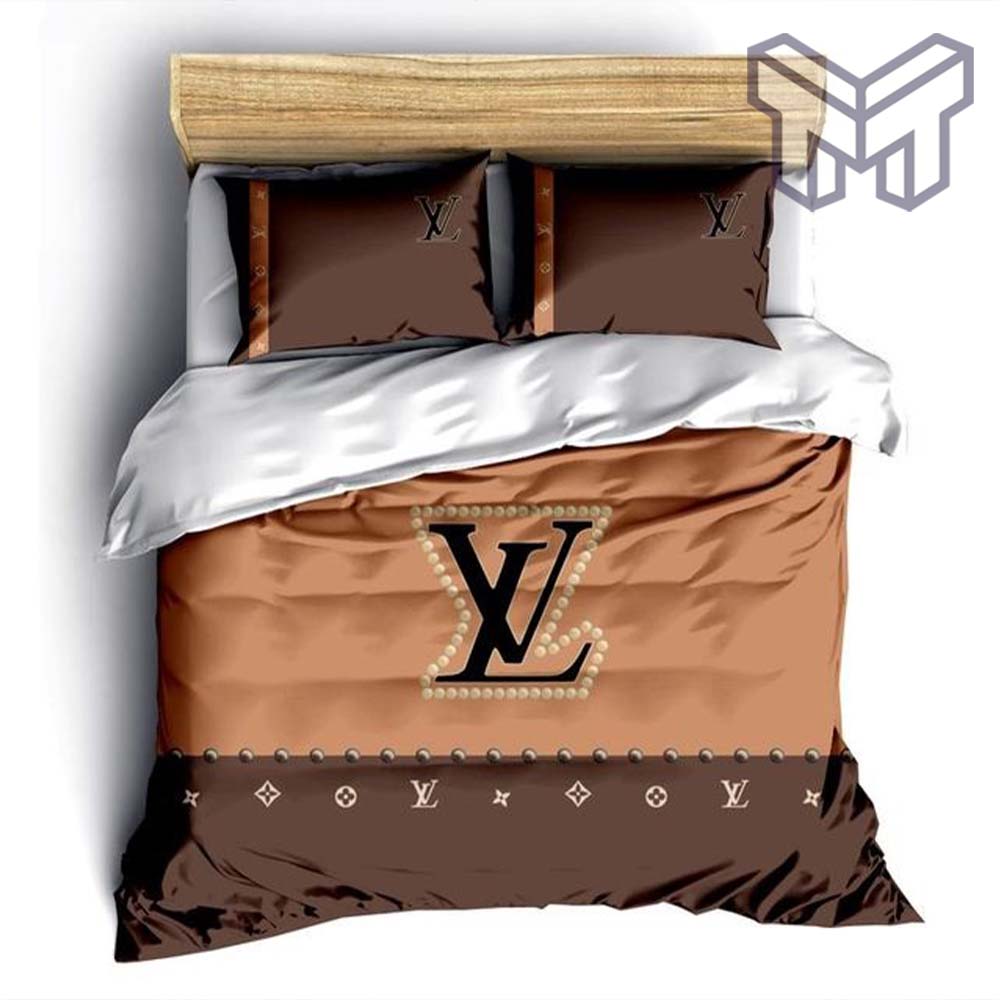 Louis Vuitton Bedding Set,Louis Vuitton Brown Luxury Brand Fashion Bedding Set Bedspread Duvet Cover Set