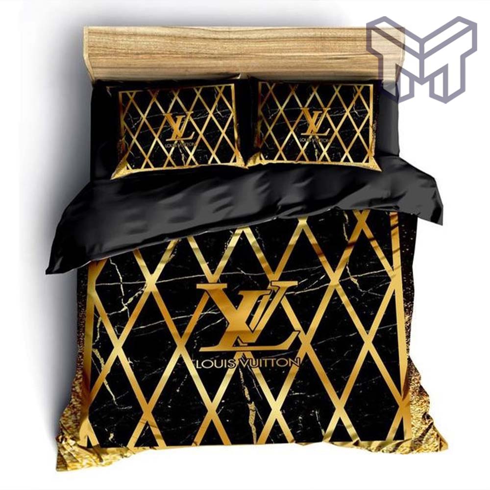 Louis Vuitton Bedding Set,Louis Vuitton Golden Black Bedding Set, Bedspread, Duvet Cover Set, The Best Quantity and Service: