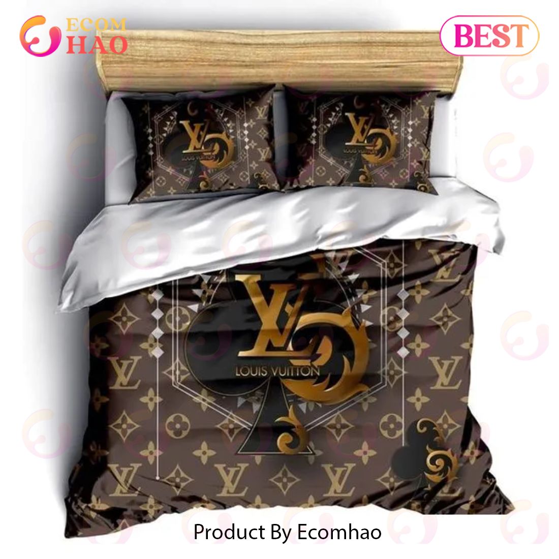 The Louis Vuitton Card Luxury Brand Bedding Set For Bedroom adds luxurious style to any bedroom. Made from high-end materials, this duvet cover and pillowcase set provides a comfortable and luxurious sleep experience. This sophisticated bedding set is made with specially designed prints that are inspired by the cards of Louis Vuitton and features exquisite details to give your bedroom an elegant and luxurious look. The breathable fabric ensures an overall fresh feeling throughout the night. The double facing technology used makes the bedding long lasting, and can handle repeated washes. Plus, with the complete set, you get a hassle-free makeover for your bedroom. Upgrade your bedroom styles with this luxurious and chic bedding set to make the perfect setting for a glamorous and fashionable sleep.