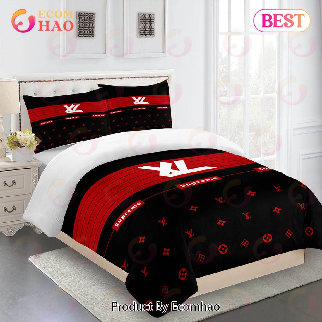 Louis Vuitton Comforter Set Red And Black Duvet Cover Bedding Sets The Louis Vuitton Comforter Set Red And Black Duvet Cover Bedding Set is the perfect mix between luxury and style. This premium-quality comforter set is made of 100% polyester, offering you an incredibly soft and smooth texture. The duvet cover and two pillowcases come...