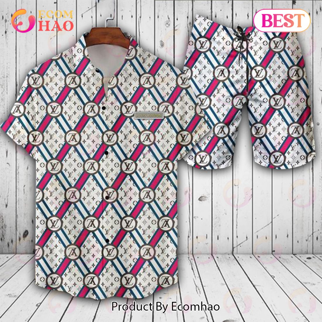 Louis Vuitton Logo Pattern Stripe LV Hawaiian Shirt And Shorts This trendy set of Louis Vuitton Logo Pattern Stripe LV Hawaiian Shirt and Shorts is perfect for sunny days at the beach or an outdoor picnic. The top is made of 100% cotton and features an all-over Louis Vuitton logo pattern stripe design. The bold...