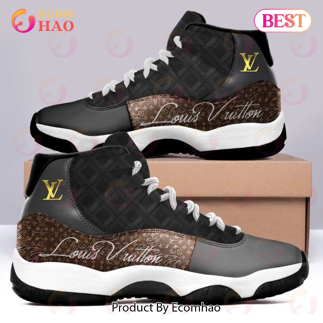 Louis Vuitton LV Black Brown Air Jordan 11 Sneakers Shoes Hot 2022 Gifts For Men Women