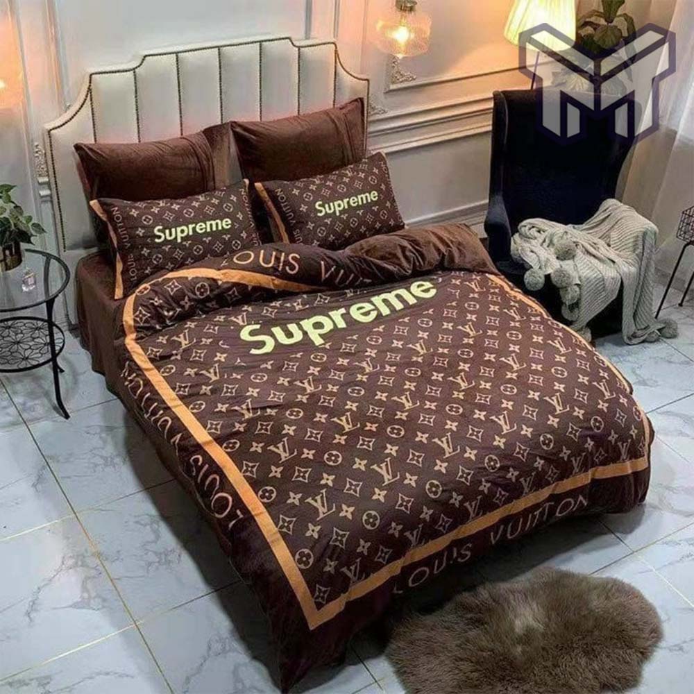 Louis Vuitton Supreme Brown Fashion Luxury Brand Bedding Set Home Decor, The Best Quantity and Service: