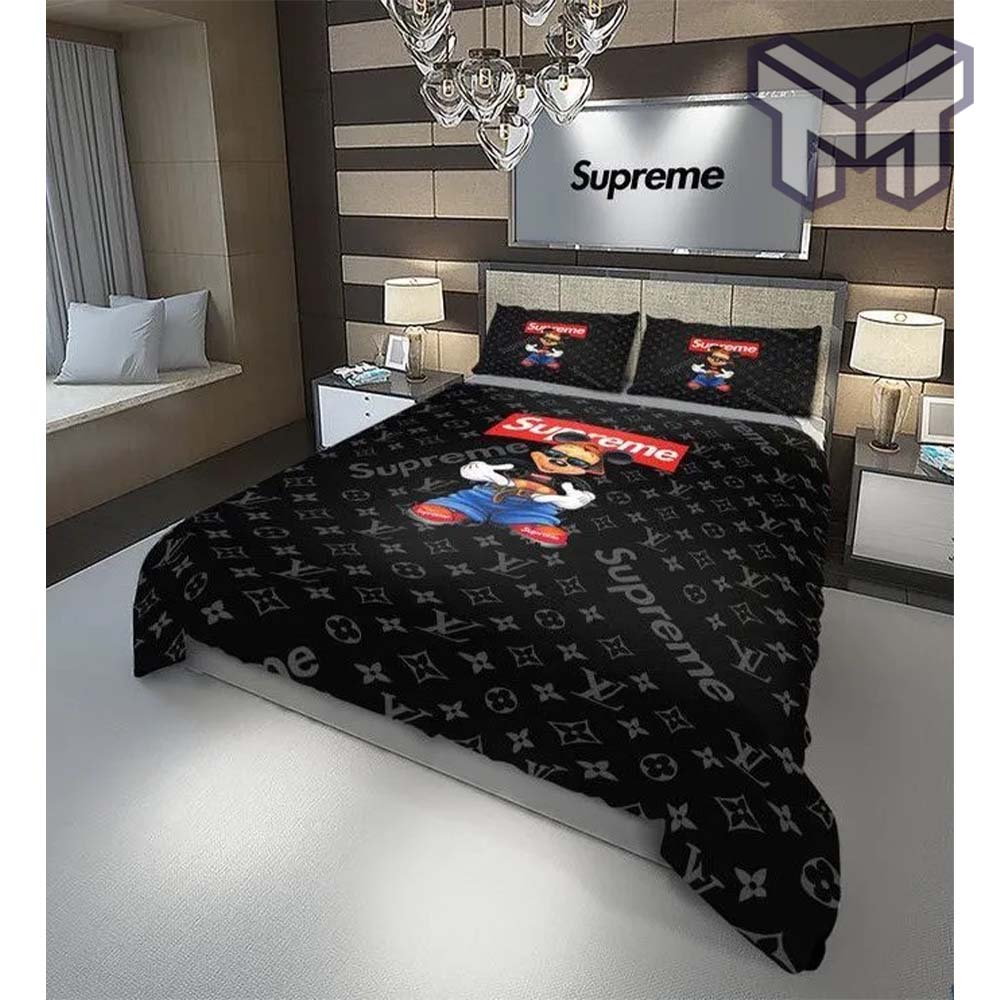 The Hot Louis Vuitton Supreme Hip Hop Mickey Luxury Brand High-End Bedding Set is a remarkable product that seamlessly blends the worlds of high fashion, hip hop, and Disney’s beloved character, Mickey Mouse. With meticulous attention to detail, this bedding set features the iconic Louis Vuitton monogram pattern adorned with the vibrant and playful Hip Hop Mickey design. Crafted from premium materials, this bedding set offers exceptional comfort, durability, and a touch of luxury. The set includes a plush duvet cover, coordinating pillowcases, and a bedspread, all designed to transform your bedroom into a stylish and captivating space. Whether you’re a fan of hip hop culture, a Disney enthusiast, or a lover of high-end fashion, the Hot Louis Vuitton Supreme Hip Hop Mickey Luxury Brand High-End Bedding Set is the perfect choice to showcase your unique style and passion. Immerse yourself in the enchanting world of hip hop and Disney while enjoying the unparalleled quality and elegance that Louis Vuitton represents. Create a truly remarkable and one-of-a-kind ambiance with this exceptional bedding set.
