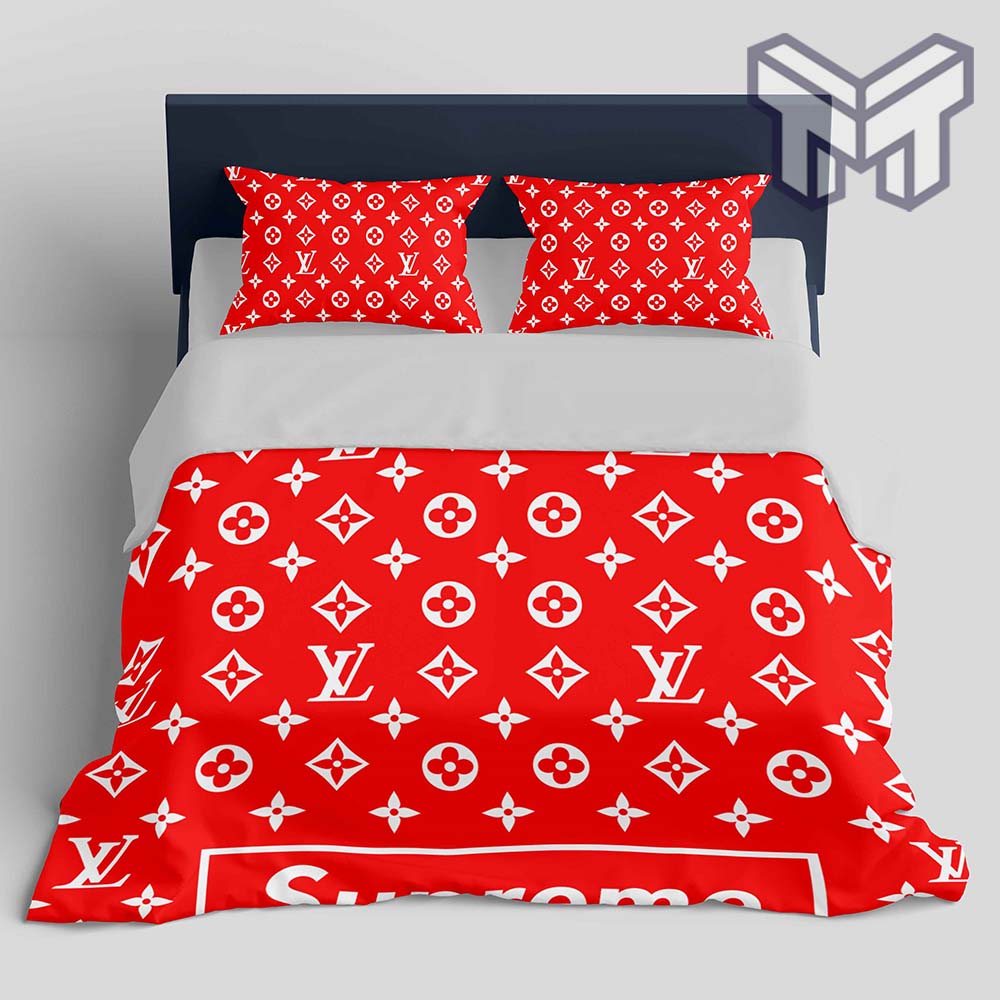 Louis Vuitton Supreme Logo Fashion Luxury Brand Bedding Set Home Decor, The Best Quantity and Service: