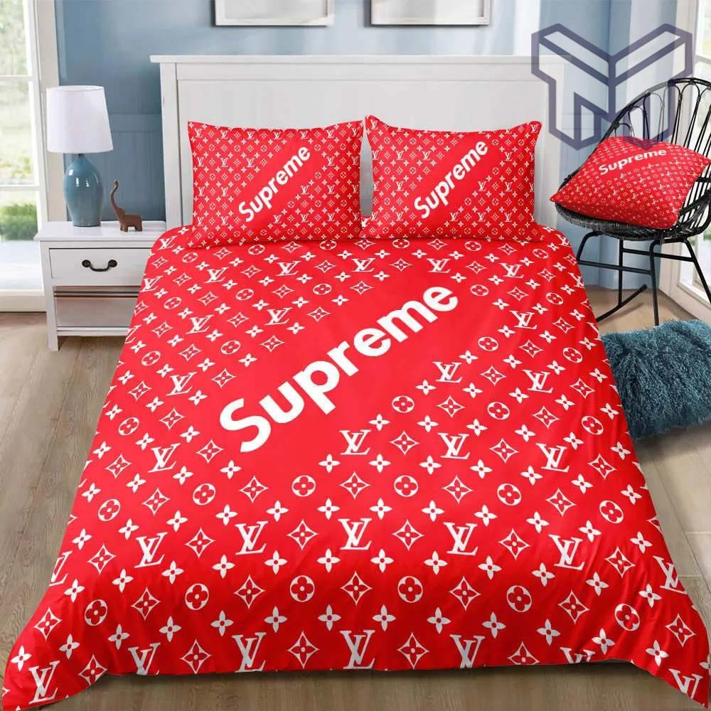 Louis Vuitton Supreme Logo Hot Luxury Brand Bedding Set Bedspread Duvet Cover Set Home Decor, The Best Quantity and Service: The Hot Louis Vuitton Supreme Logo Hot Luxury Brand Bedding Set Bedspread Duvet Cover Set Home Decor is a stunning product that exudes luxury and sophistication. Designed with meticulous craftsmanship, this bedding set showcases the...