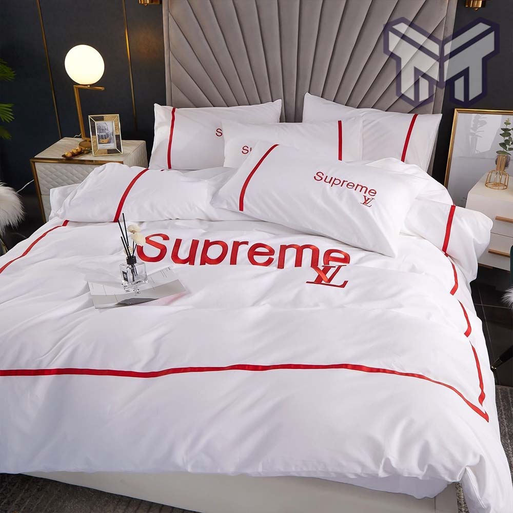 Louis Vuitton Supreme White Fashion Luxury Brand Bedding Set Home Decor, The Best Quantity and Service: