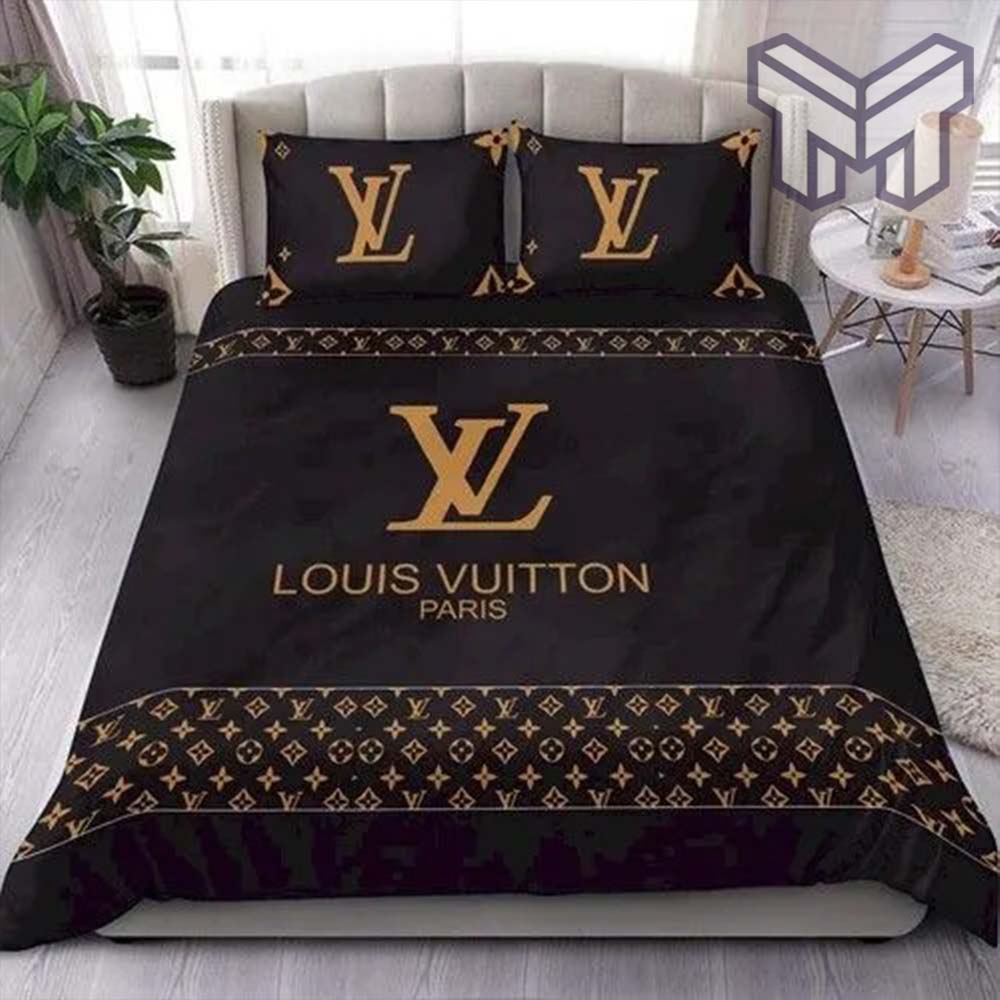 Louis Vuitton Yellow Logo Black Luxury Brand Premium Bedding Set Duvet Cover Home Decor, The Best Quantity and Service: