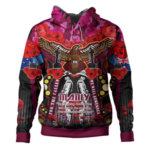 Manly Warringah Sea Eagles Anzac Custom Hoodie – Remembrance Manly Anzac Day With Poppy Flower Watercolour Style