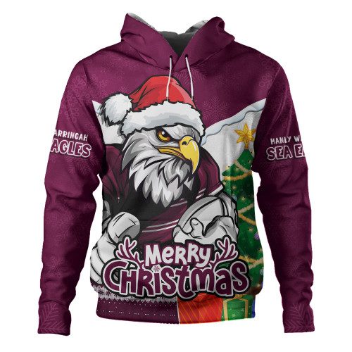 Manly Warringah Sea Eagles Hoodie Santa Scoring Touchdown On Christmas Game Day