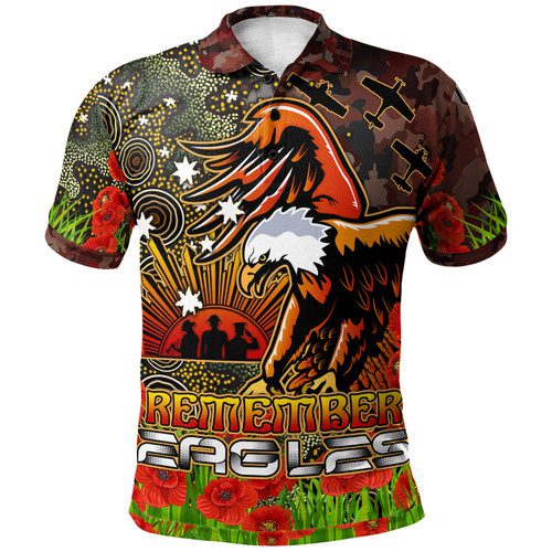 Manly Warringah Sea Eagles Polo Shirt – Anzac Manly Warringah Sea Eagles with Remembrance Poppy and Indigenous Patterns Polo Shirt