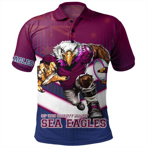 Manly Warringah Sea Eagles Polo Shirt – Manly Warringah Sea Eagles Mascot With Australia Flag Polo Shirt