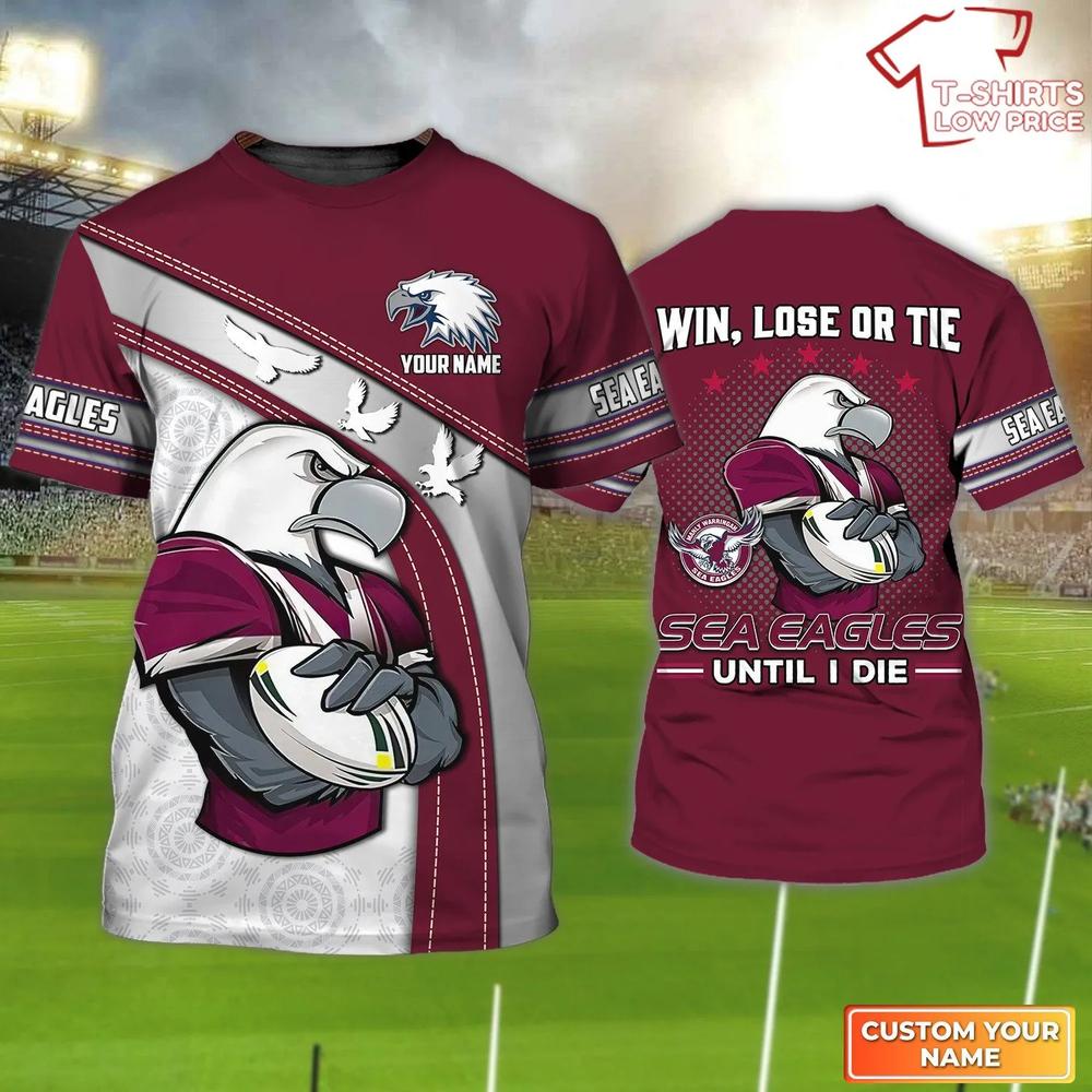 Manly Warringah Sea Eagles T-Shirt Hoodie Zipper Hoodie for men and women Win Lose Or Tie Sea Eagles Until I Die Personalized Name