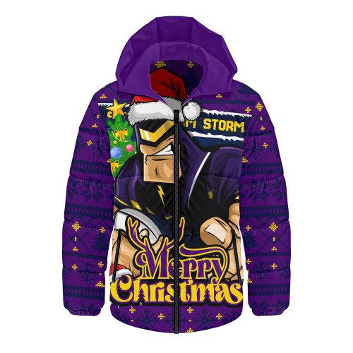 Melbourne Storm Hooded Padded Jacket Merry Christmas Game Day Knit Style Team Edition