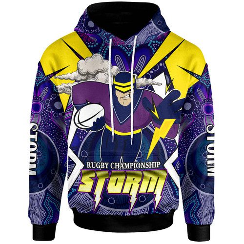 Melbourne Storm Hoodie – Custom Championship Melbourne Storm Mascot with Aboriginal Inspired Pattern Player And Number Hoodie