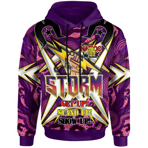 Melbourne Storm Hoodie – Custom Naidoc Week Melbourne Storm Hand Thunder With Aboriginal Inspired Pattern ”Get up, Stand Up, Show Up” Hoodie