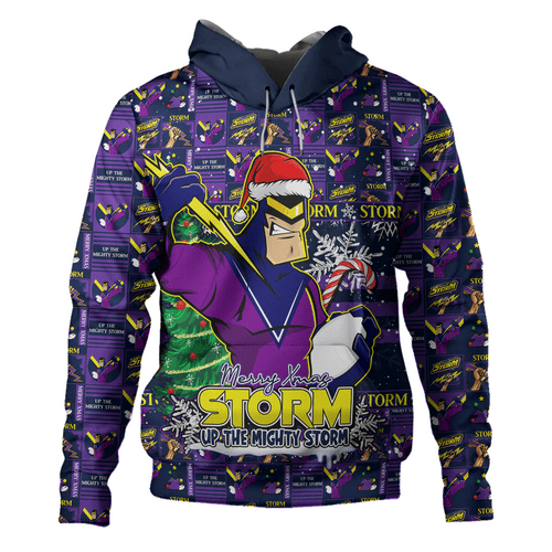 Melbourne Storm Hoodie Merry Ugly Christmas Comic Style