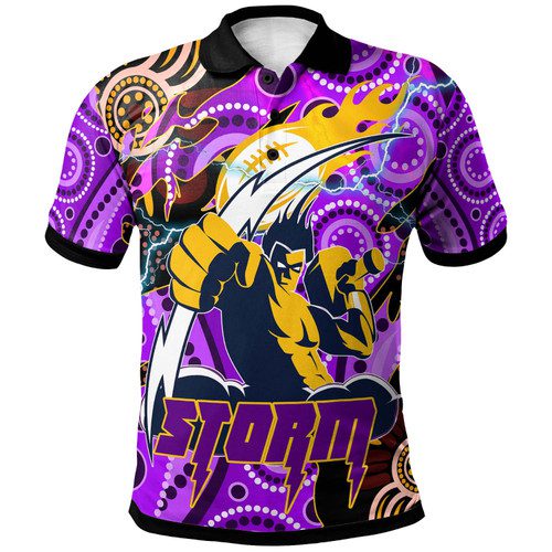 Melbourne Storm Polo Shirt – Custom Melbourne Storm Team with Aboriginal Inspired Dot Painting and Indigenous Pattern
