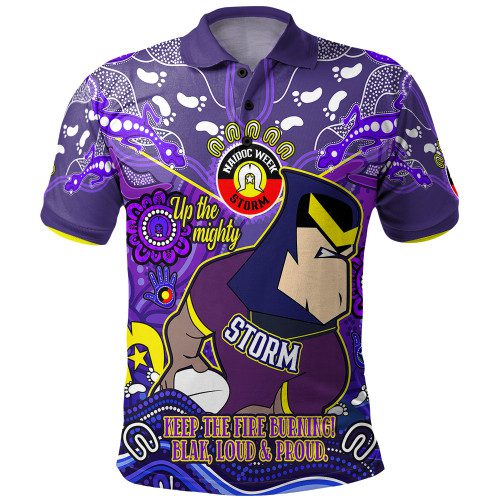 Melbourne Storm Polo Shirt Custom Naidoc Keep the Fire Burning! Blak, Loud & Proud Home Jersey
