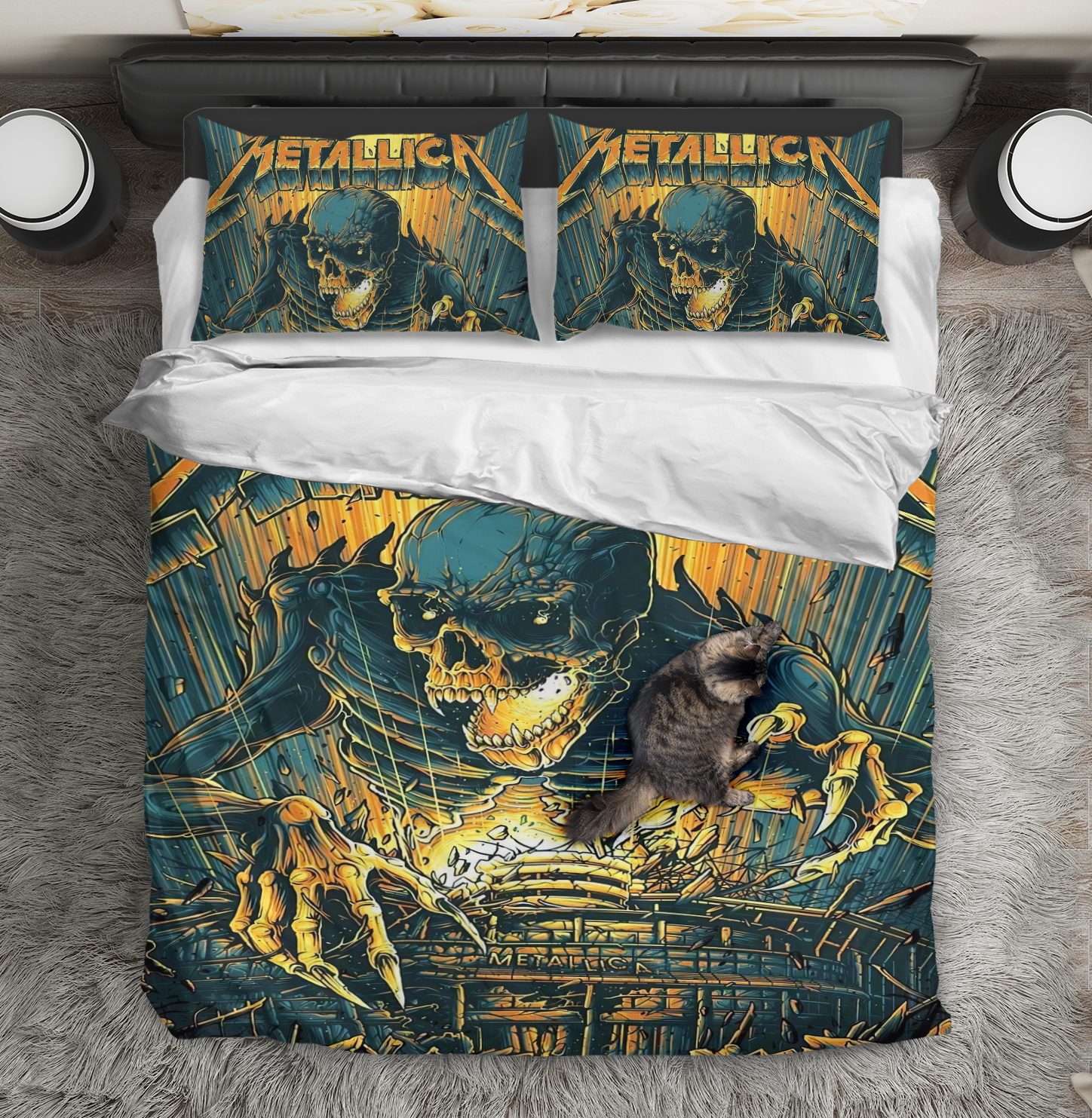 This Metallica quilt cover set is custom-made-to-order and handcrafted to the highest quality standards.