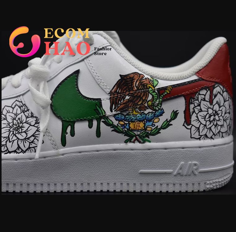 Mexico Flag Air Force 1 Custom The Mexico Flag Air Force 1 Custom is an iconic sneaker reimagined with classic style. This one-of-a-kind shoe features a white upper with a colorful Mexican flag motif and “Viva Mexico” written on the heel. It also includes the signature Nike swoosh as well as perforated details for the...