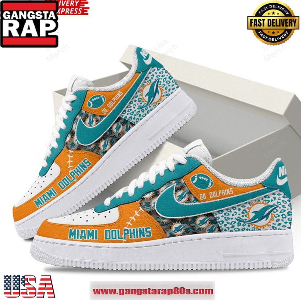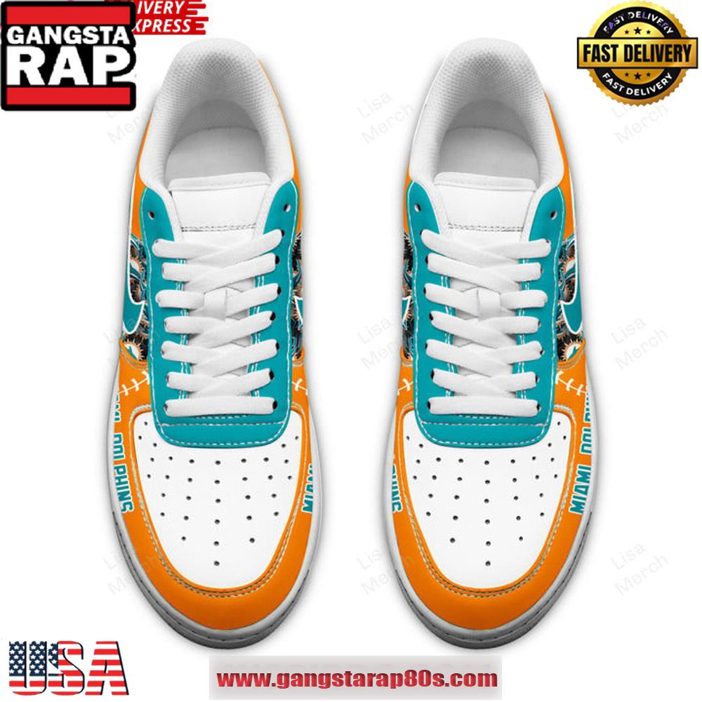 Introducing the ultimate Miami Dolphins fan gear for this season – the Go Dolphins Air Force 1 Running Sneakers. These 2023 sneakers are not just about showing your support; they redefine fan fashion with their unique blend of style and functionality. Crafted with the die-hard Dolphins fan in mind, these sneakers feature a vibrant color scheme that proudly showcases the team?s iconic colors. The official dolphin logo, embossed on the side, adds a touch of authenticity that every true fan will appreciate.