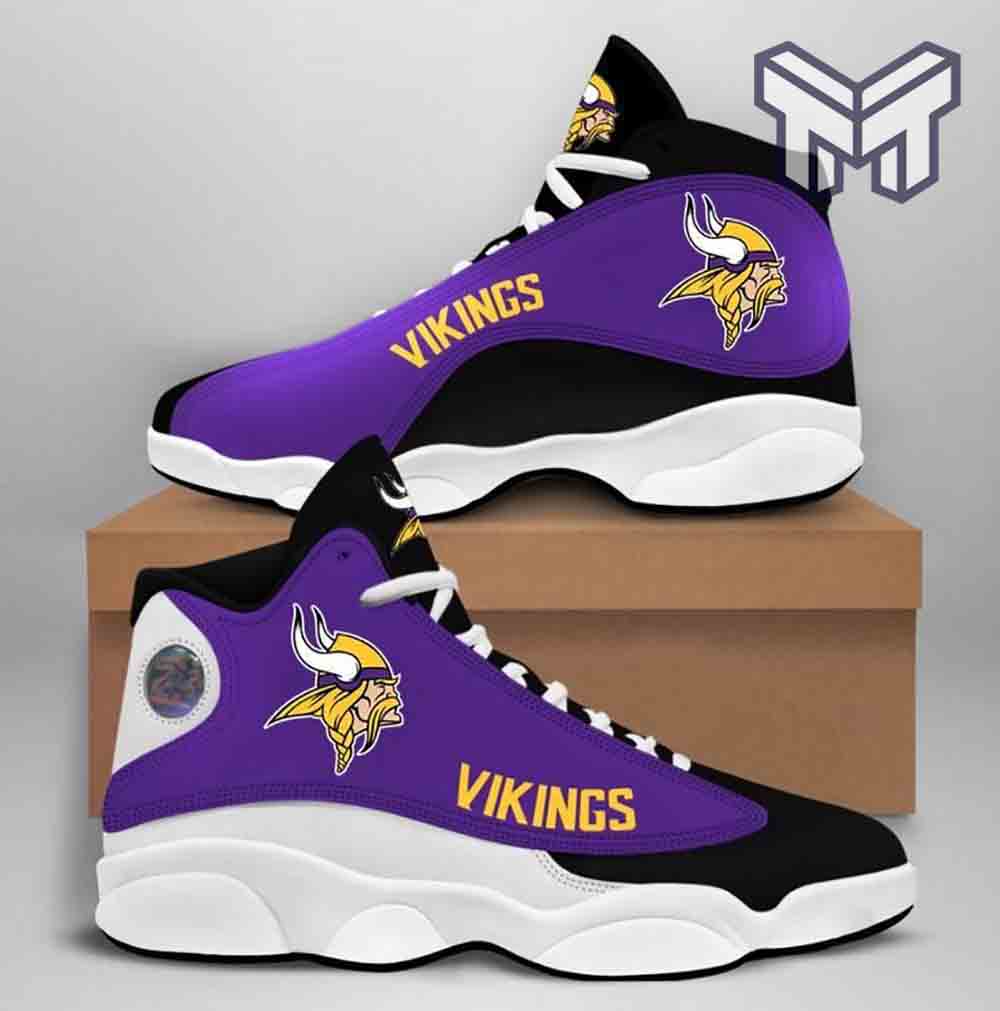 As a limited edition release, the Minnesota Vikings Air Jordan 13, NFL Big Logo Fans Sport White Black J13 Shoes Type01 is a highly sought-after item. With only a limited number of pairs available, it’s important to act fast to secure your own. Whether you’re a die-hard Vikings fan, a sneaker collector, or simply someone who appreciates unique and stylish footwear, this shoe is a must-have addition to your collection.