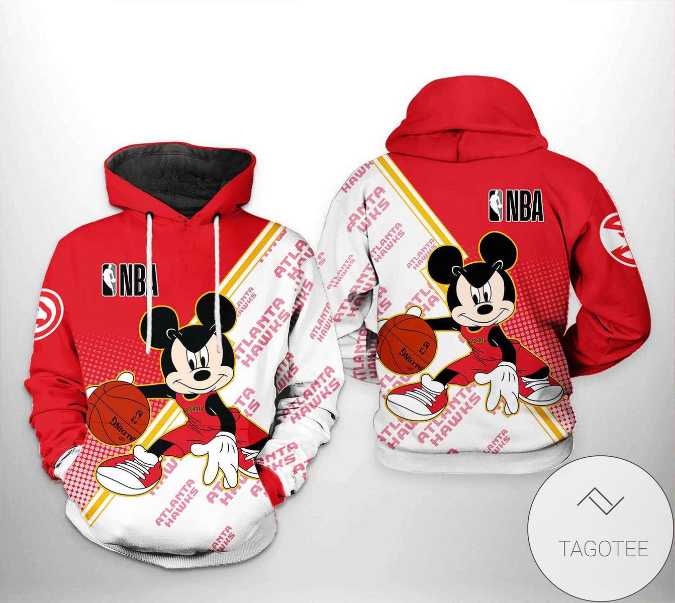 NBA Atlanta Hawks Red White Half Mickey Pullover Hoodie Product Features Along with its Atlanta Hawks graphics, this cozy pullover hoodie features super-soft midweight material. Material: 95% polyester + 5% spandex. The fabric is durable and resistant to wrinkles, shrinking and mildew. Hood with drawstrings. Long sleeve. Front pouch pocket. Midweight hoodie suitable for moderate...