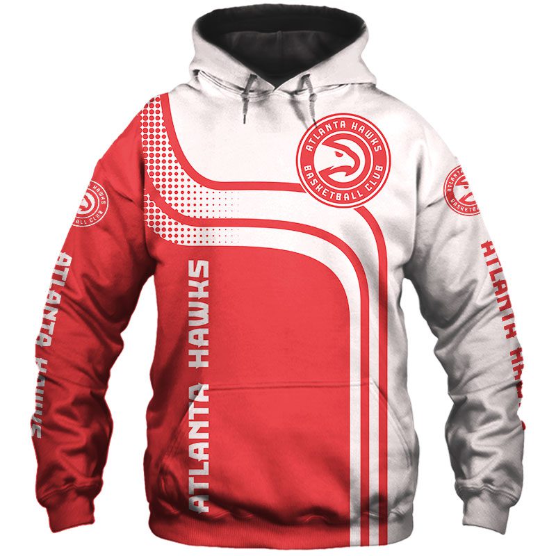 NBA Atlanta Hawks White Red Curves Pullover Hoodie Product Features Along with its Atlanta Hawks graphics, this cozy pullover hoodie features super-soft midweight material. Material: 95% polyester + 5% spandex. The fabric is durable and resistant to wrinkles, shrinking and mildew. Hood with drawstrings. Long sleeve. Front pouch pocket. Midweight hoodie suitable for moderate temperatures....