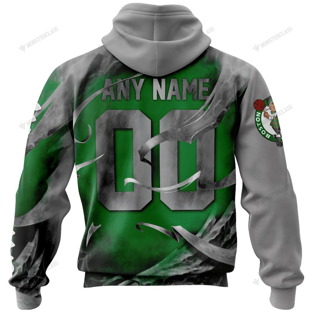 NBA Boston Celtics Custom Name Number Green Grey Skull Pullover Hoodie Product Features Along with its Boston Celtics graphics, this cozy pullover hoodie features super-soft midweight material. Material: 95% polyester + 5% spandex. The fabric is durable and resistant to wrinkles, shrinking and mildew. Hood with drawstrings. Long sleeve. Front pouch pocket. Midweight hoodie suitable...