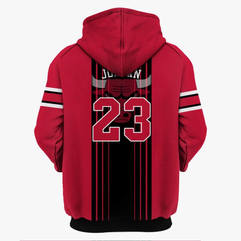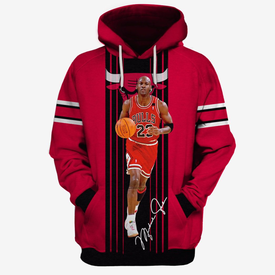 NBA Chicago Bulls Michael Jordan #23 Pullover Hoodie V10 Product Features Along with its Chicago Bulls graphics, this cozy pullover hoodie features super-soft midweight material. Material: 95% polyester + 5% spandex. The fabric is durable and resistant to wrinkles, shrinking and mildew. Hood with drawstrings. Long sleeve. Front pouch pocket. Midweight hoodie suitable for moderate...