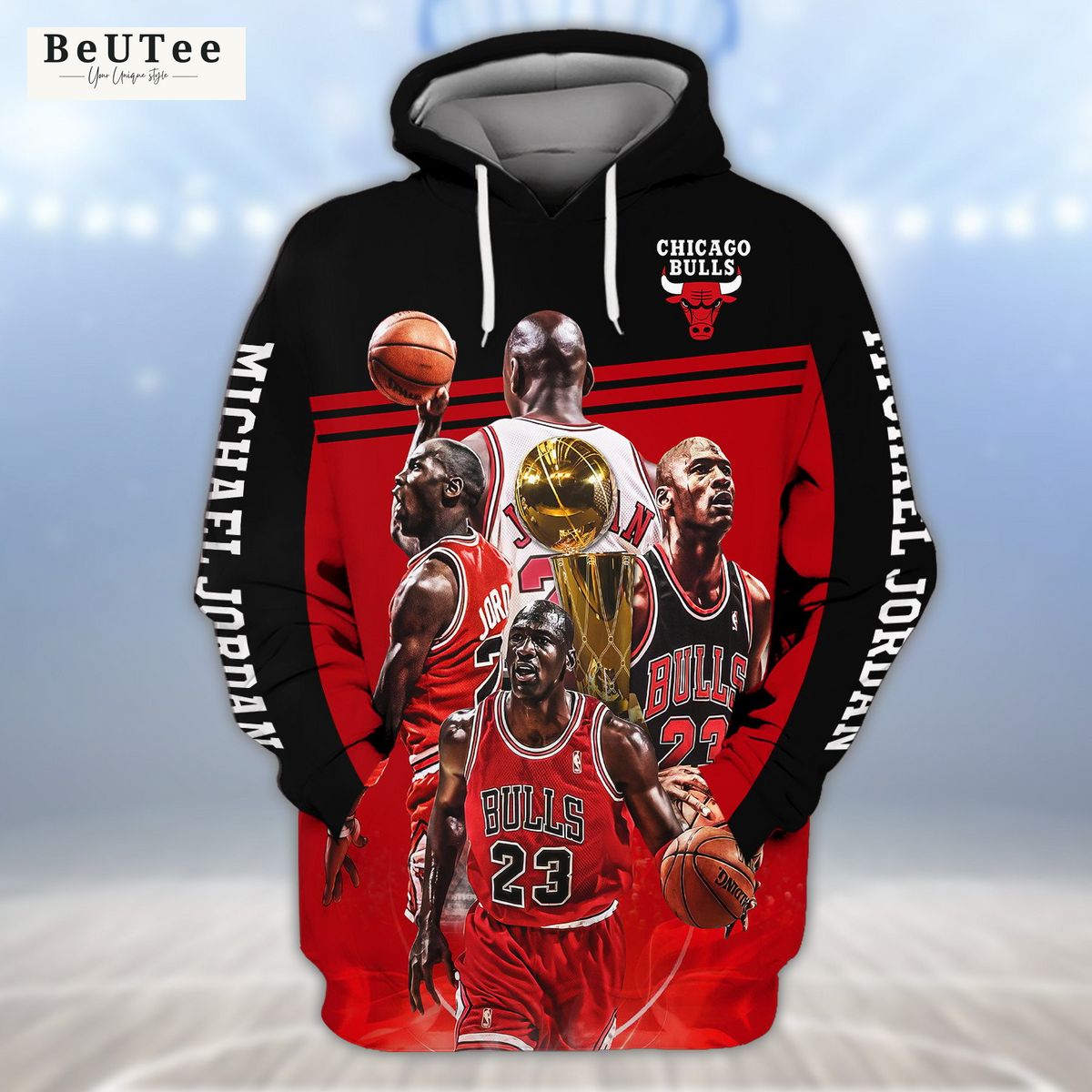 NBA Chicago Bulls Michael Jordan #23 Pullover Hoodie V16 Product Features Along with its Chicago Bulls graphics, this cozy pullover hoodie features super-soft midweight material. Material: 95% polyester + 5% spandex. The fabric is durable and resistant to wrinkles, shrinking and mildew. Hood with drawstrings. Long sleeve. Front pouch pocket. Midweight hoodie suitable for moderate...