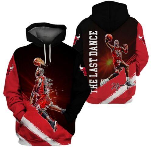 NBA Chicago Bulls Michael Jordan #23 The Last Dance Pullover Hoodie V10 Product Features Along with its Chicago Bulls graphics, this cozy pullover hoodie features super-soft midweight material. Material: 95% polyester + 5% spandex. The fabric is durable and resistant to wrinkles, shrinking and mildew. Hood with drawstrings. Long sleeve. Front pouch pocket. Midweight hoodie...