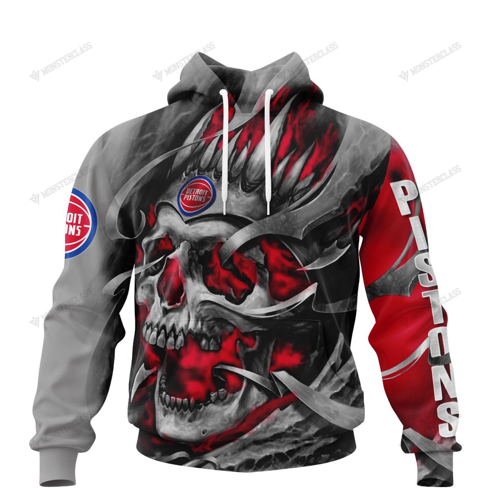 NBA Detroit Pistons Custom Name Number Skull Pullover Hoodie V4 Product Features
