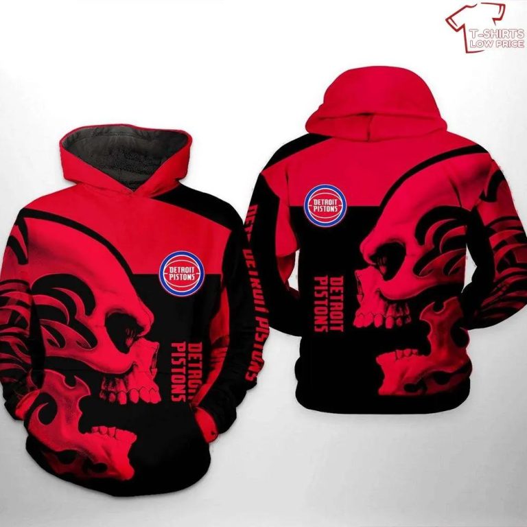 NBA Detroit Pistons Red Black Skull Pullover Hoodie V2 Product Features Along with its Detroit Pistons graphics, this cozy pullover hoodie features super-soft midweight material. Material: 95% polyester + 5% spandex. The fabric is durable and resistant to wrinkles, shrinking and mildew. Hood with drawstrings. Long sleeve. Front pouch pocket. Midweight hoodie suitable for moderate...