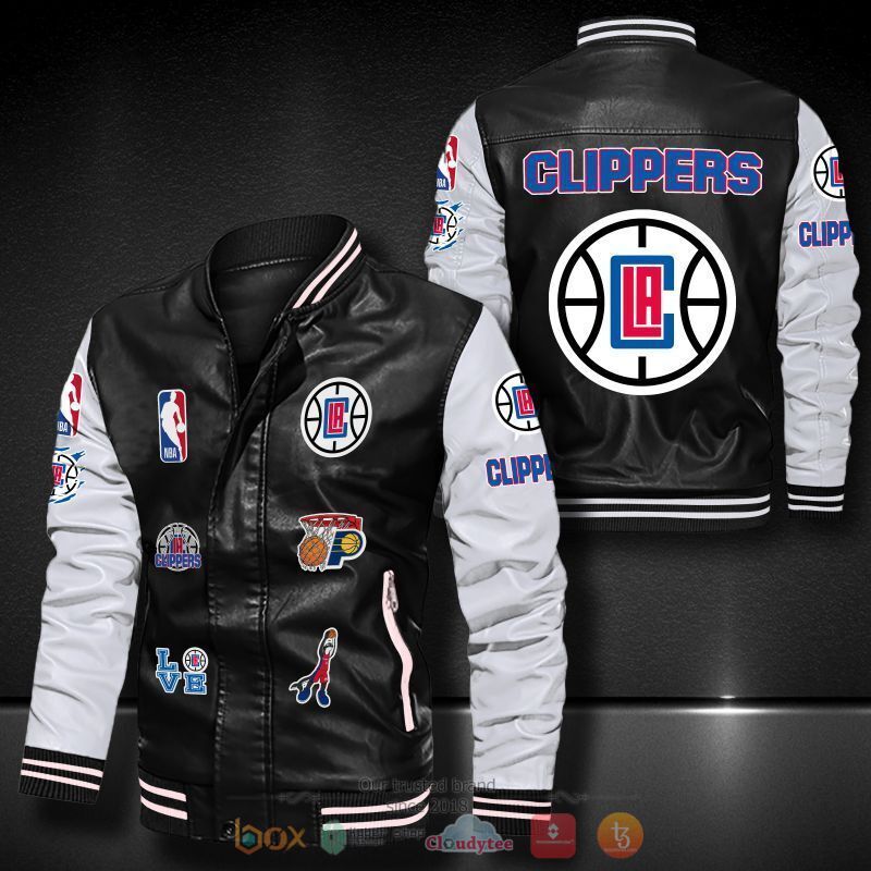 NBA Los Angeles Clippers Black White Logo Team Leather Bomber Jacket
