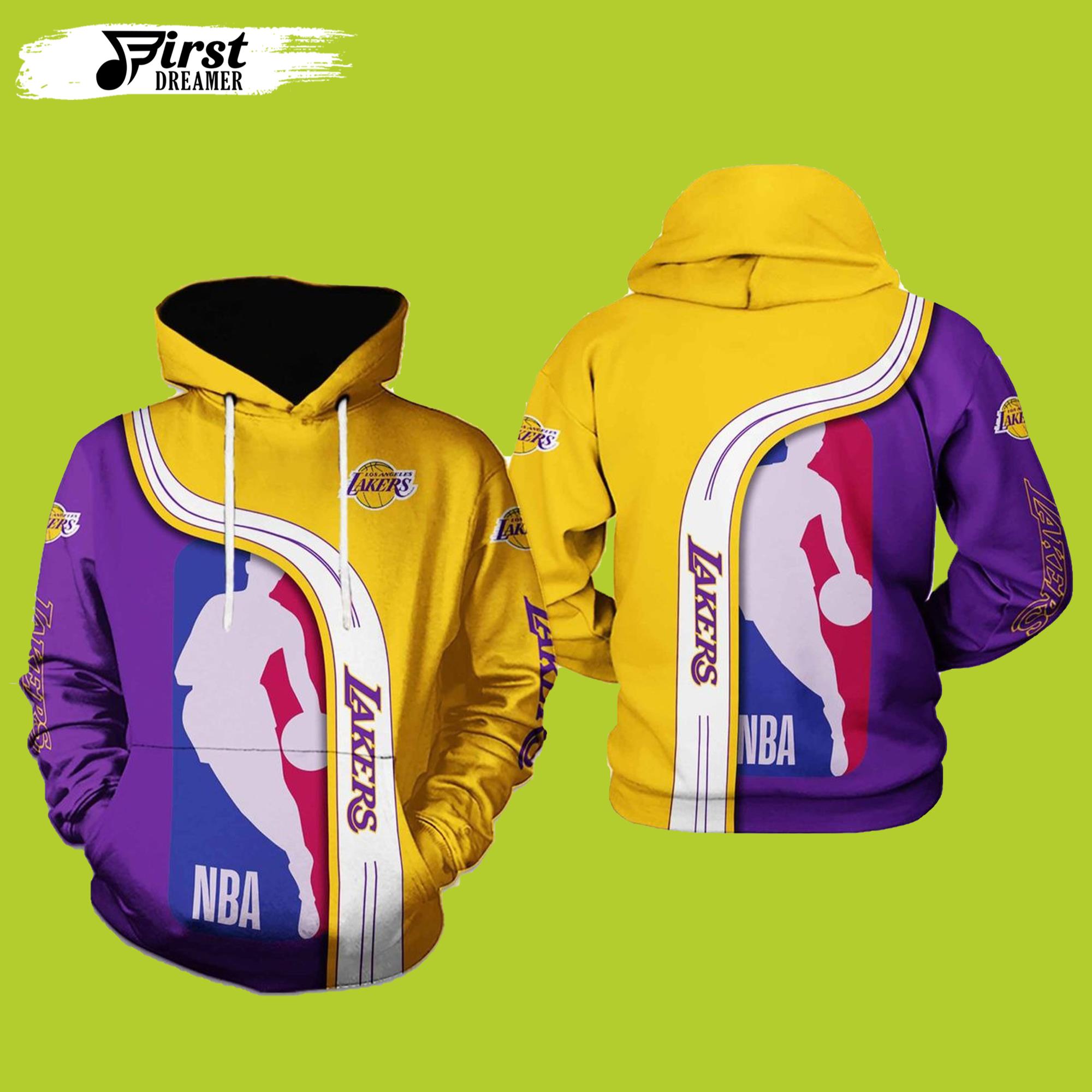 NBA Los Angeles Lakers Golden Purple HIghway Pullover Hoodie Product Features Along with its Los Angeles Lakers graphics, this cozy pullover hoodie features super-soft midweight material. Material: 95% polyester + 5% spandex. The fabric is durable and resistant to wrinkles, shrinking and mildew. Hood with drawstrings. Long sleeve. Front pouch pocket. Midweight hoodie suitable for...
