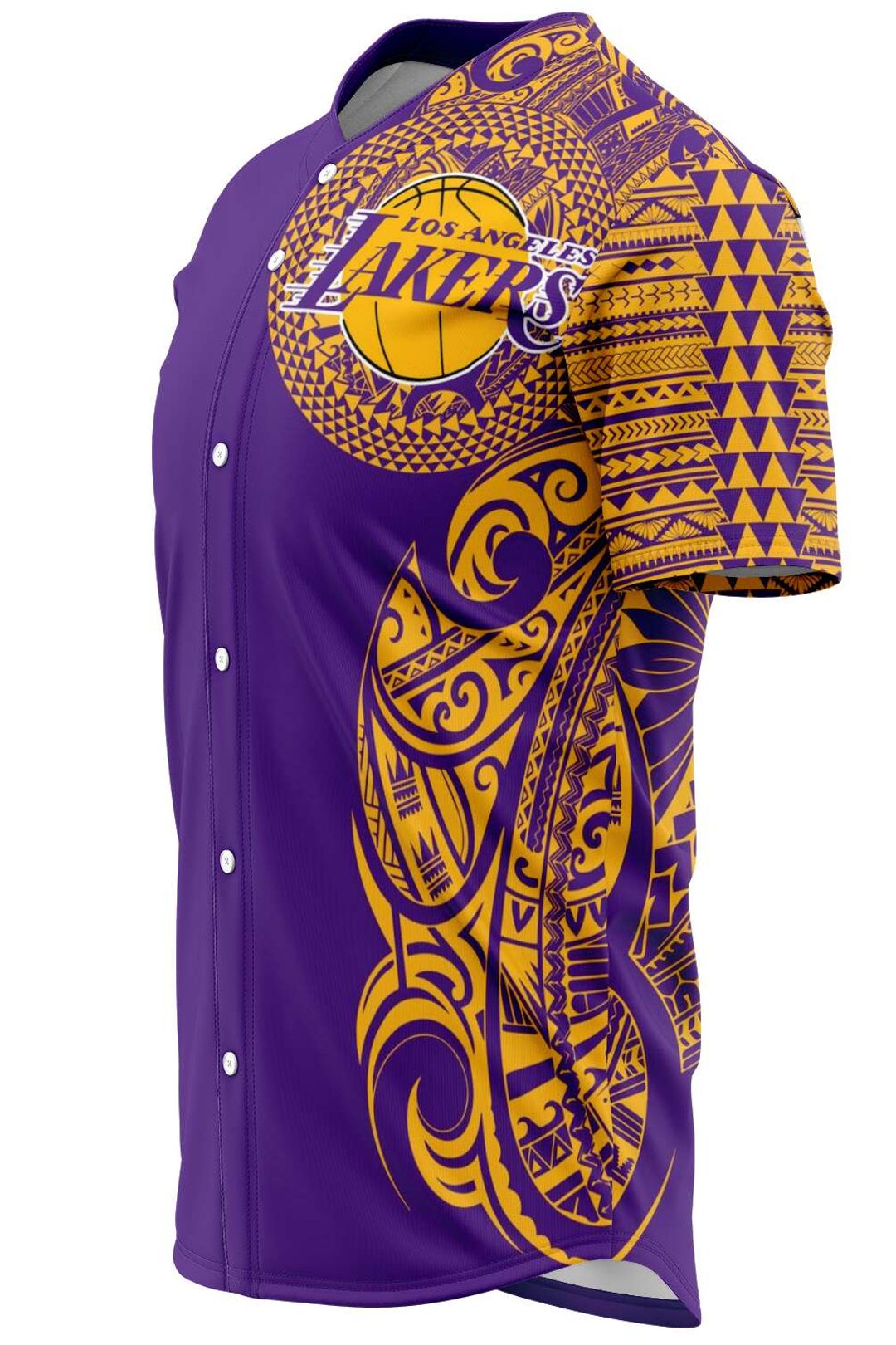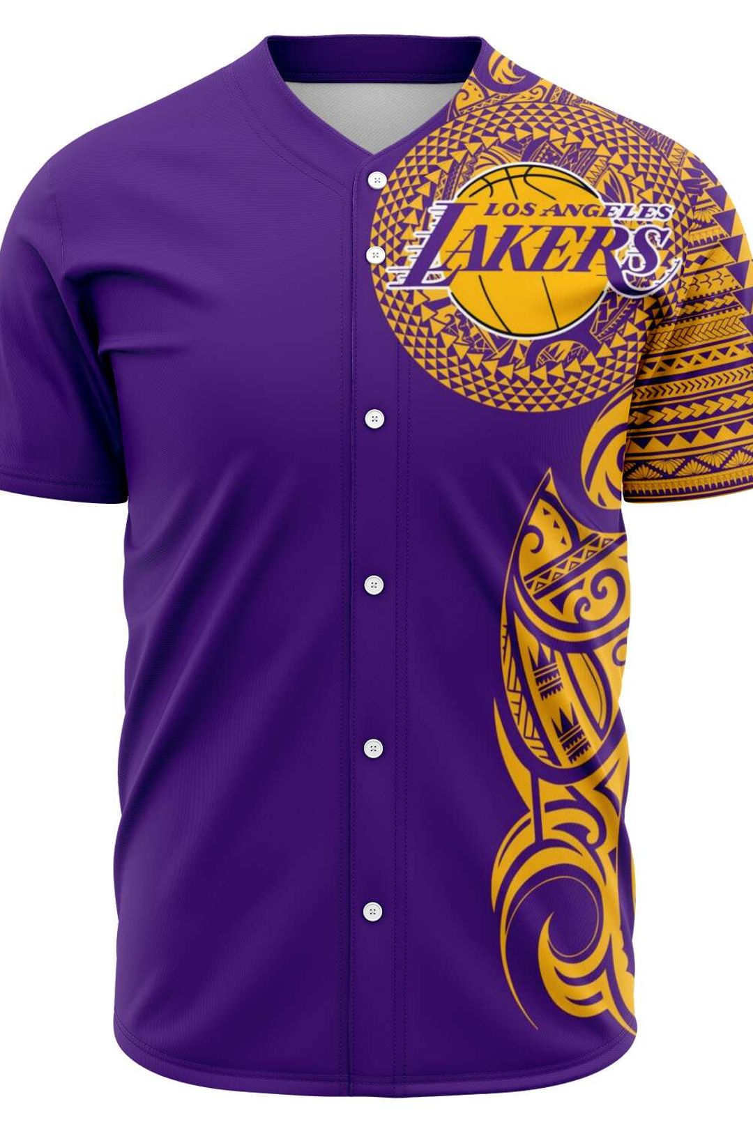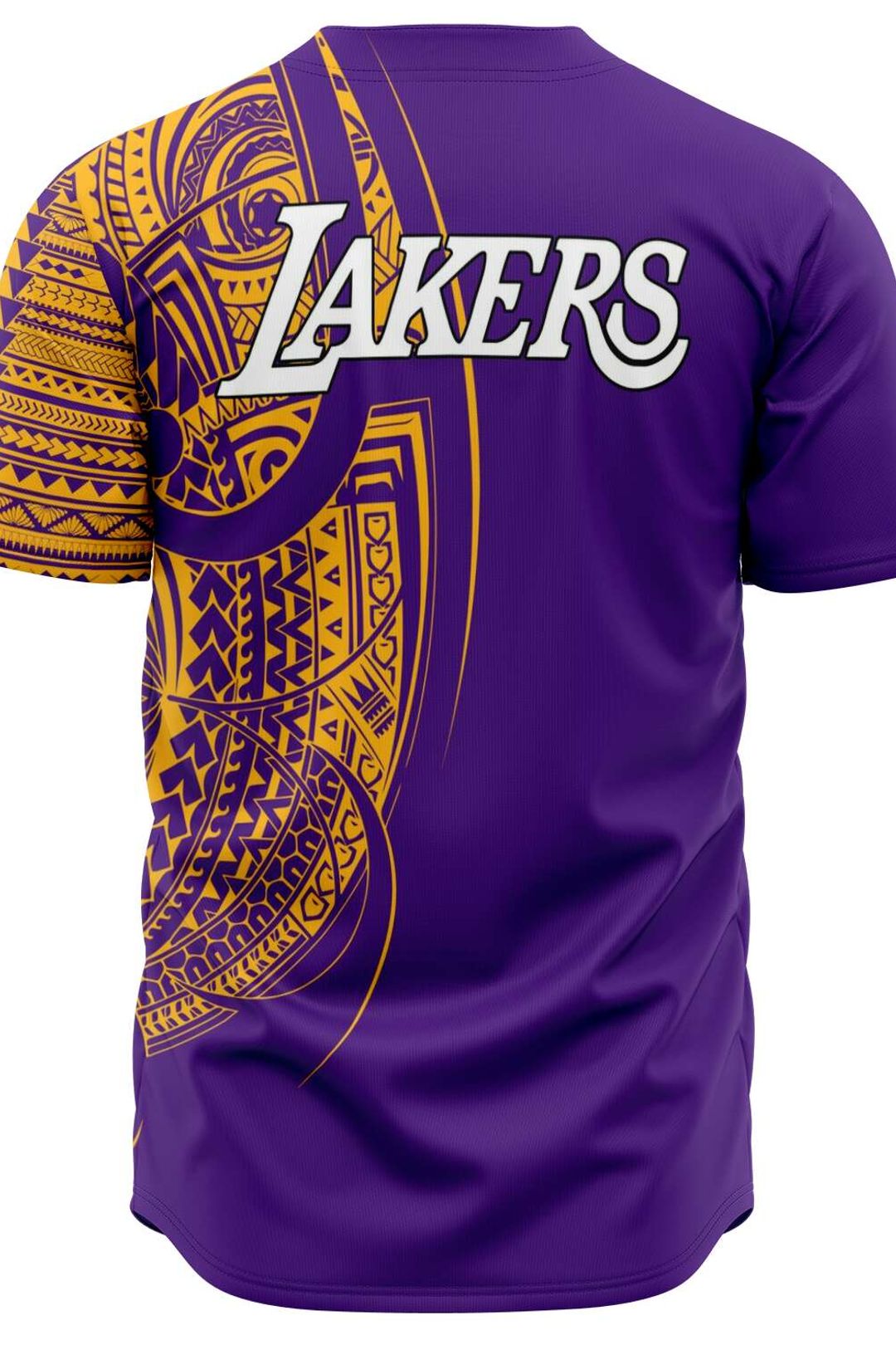 NBA Los Angeles Lakers Purple Gold Polynesian Baseball Jersey Product Features This Los Angeles Lakers Baseball Jersey is not only sturdy and durable for long hours of exercising, but also breathable and moisture-wicking to keep you snug all day. Breathable fabric: This Baseball Jersey is made of woven fabric, with moisture-wicking features and a comfortable...