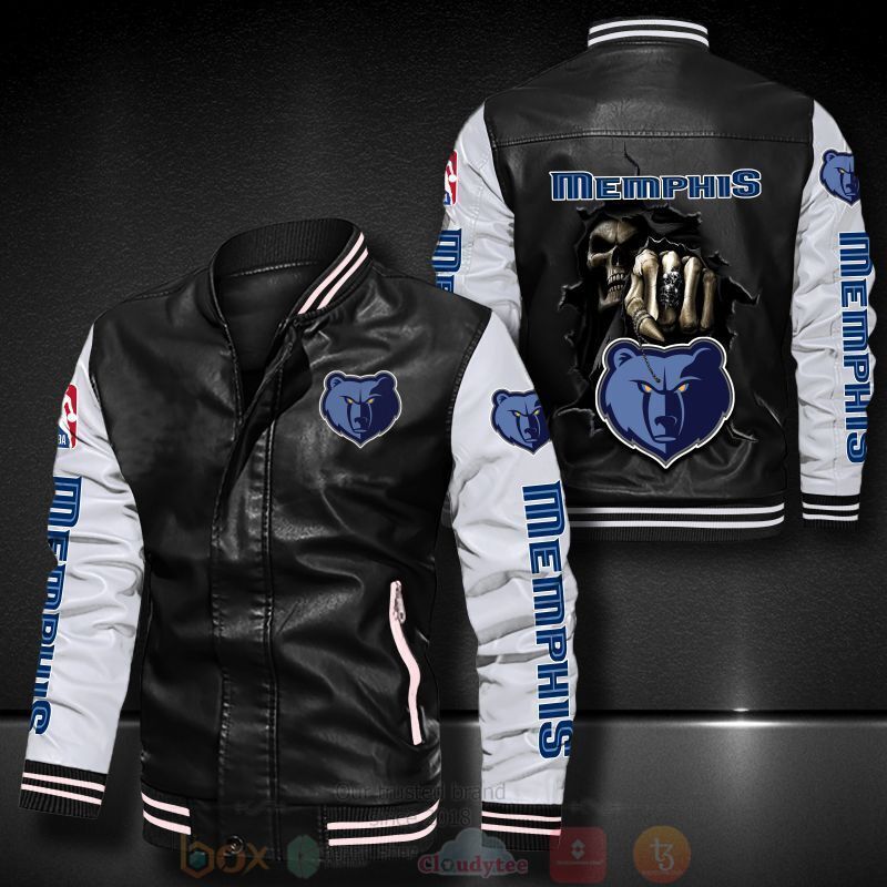NBA Memphis Grizzlies Black White Skull Leather Bomber Jacket